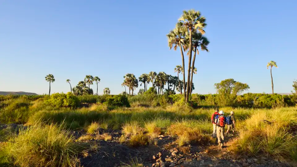 <Endlich wieder gut ausgeschlafen und vom Frühstück gestärkt machen wir uns auf den Weg, um uns die Bulls Party und den Elephant Head etwas näher anzuschauen. Bei der Bulls Party handelt es sich um ein Gebiet, in dem riesige Granitkugeln und Kissen verstreut in der Landschaft liegen, als hätte ein Riese mit Murmeln gespielt, während der Elefantenkopf ein spannend und "auf Reibung" zu besteigender Bergrücken ist. Nach der Besteigung umrunden wir ihn und laufen gemächlich zurück zum Camp, lassen uns überraschen, welche Wildtiere unseren Weg kreuzen. Vielleicht begegnen uns Kudus oder Oryx, Klippspringer, Paviane oder majestätisch einher schreitende Giraffen. Nach Rückkehr zum Camp und einer ausgiebigen Siesta können wir uns noch ein wenig am Pool entspannen. -