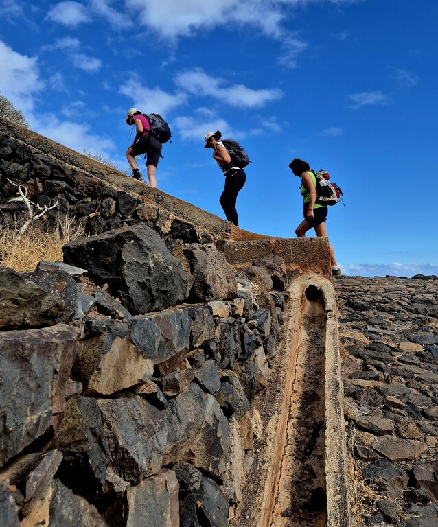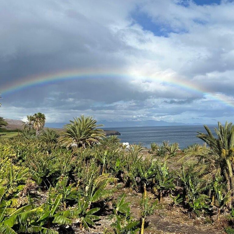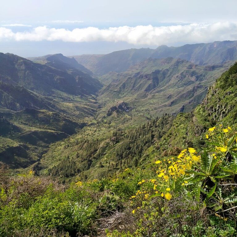 <Im Norden der Insel entdecken wir zwei der schönsten Buchten La Gomeras. Unsere Wanderung beginnt in Hermigua und führt uns entlang der Küste, begleitet vom beruhigenden Rauschen des Meeres. Schon bald öffnet sich der Blick auf eine faszinierende, grüne Schlucht, die zum Erkunden einlädt. Der Aufstieg wird reich belohnt: Vor uns liegt Agulo, ein malerisches Dorf, das halbkreisförmig von einer 300 Meter hohen Felswand umgeben ist. Die zahlreichen, in Trockenmauerbau errichteten Terrassen zeugen von traditioneller Landwirtschaft und verleihen der Landschaft einen einzigartigen Charme. Agulo gilt als eines der schönsten Dörfer der Insel und wird oft als der „grüne Balkon“ La Gomeras bezeichnet. An klaren Tagen eröffnet sich hier ein spektakulärer Blick auf den majestätischen Teide (3.718 m) auf Teneriffa, den höchsten Berg Spaniens.
