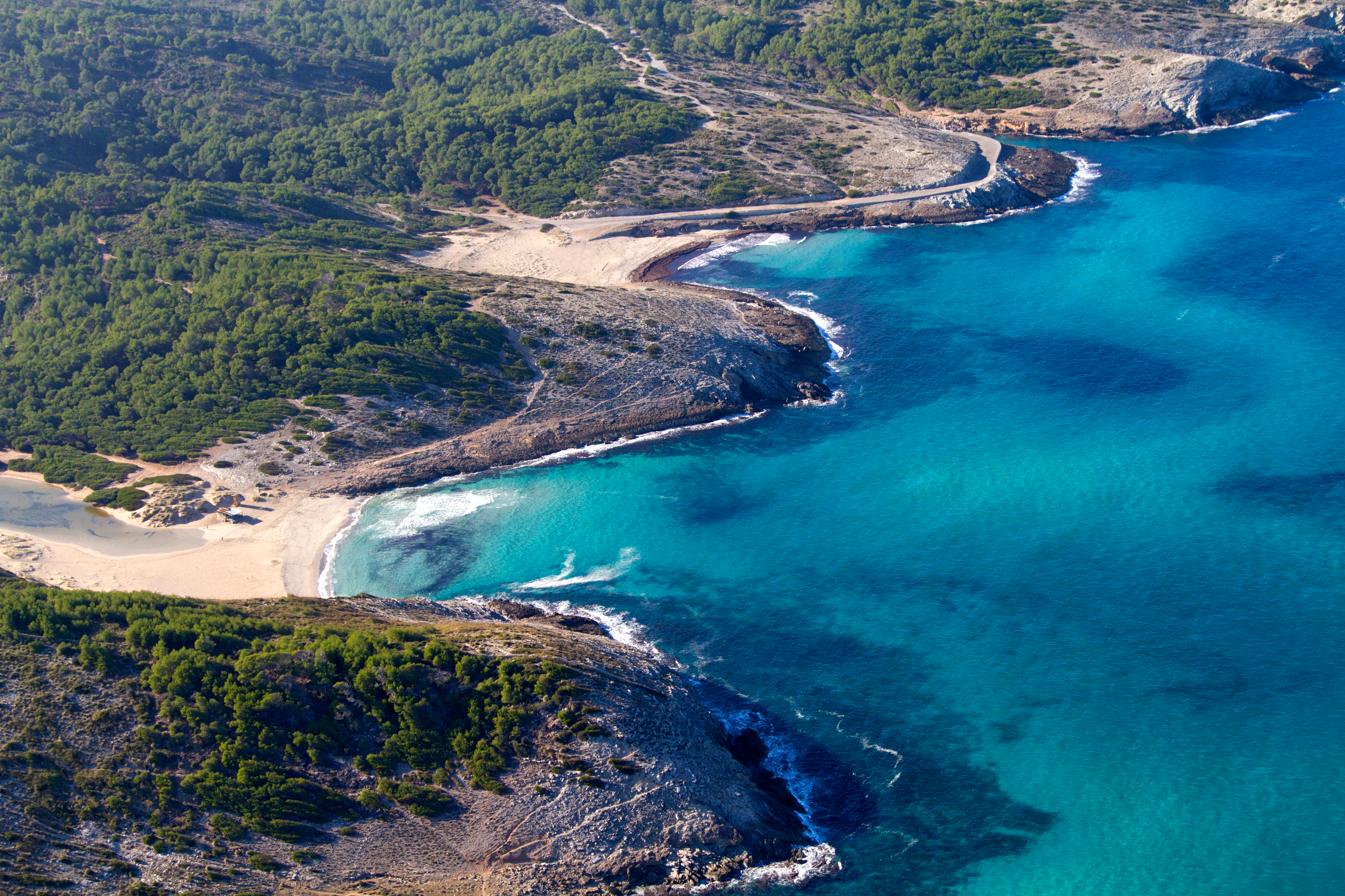 <Wir fahren nach Süden, wo wir über einen Feldweg direkt bis an die Küste wandern. Die Wanderung, führt uns entlang der Küstenlinie auf einem Plateau oberhalb des Meeres durch die mediterrane Vegetation. Unter uns wogt das Meer und die Wellen brechen am Kalkstein der Insel. Immer wieder gelangen wir zu Aussichtspunkten, welche die von zahlreichen Unterhöhlungen des Küstenfelsens gekrönt werden. Schließlich erreichen wir den Sandstrand von der Cala Romantica. Je nach Wetter und Temperatur, können wir hier eine kurze Badepause einlegen.