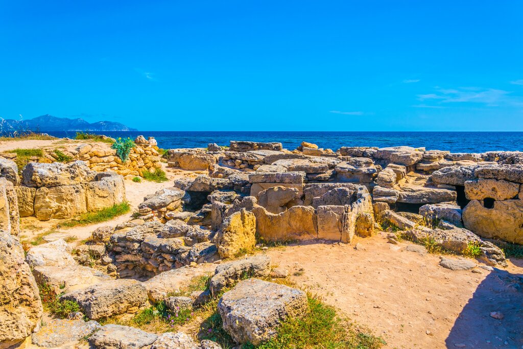 <Um 9:00 Uhr starten wir vom Hotel. Nach unserer Busfahrt wandern wir vom alten Gutshof Son Real los, wo wir die Möglichkeit einer kurzen Besichtigung haben. Durch einen Pinienhain geht es weiter bis zum Meer, zur Neokropolis von Son Real. In der Ferne glitzern die Silhouetten von Colònia de Sant Pere und Betlem vor dem Bergrücken, der sich bis zum Kap Farrutx zieht. Links der Blick über die Bucht von Alcúdia, rechts wehen die Blätter der Palmen von Son Real im Wind. Der Weg führt nun entlang der Küste, in die kleine Siedlung Son Serra de Marina, wo ein bereits gedeckter Tisch auf uns wartet.