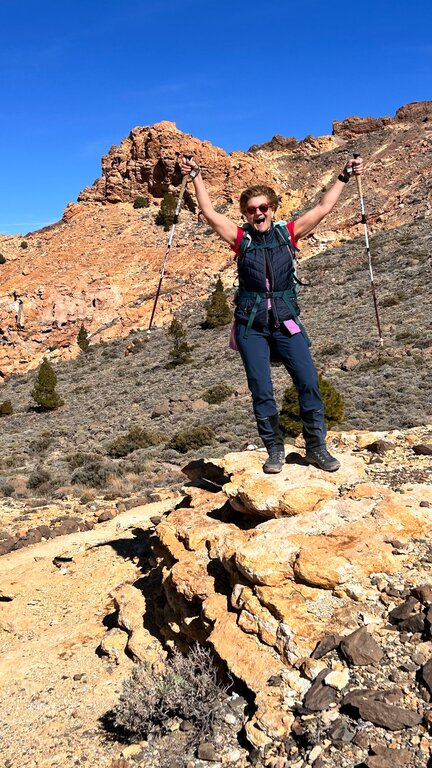 <Der Bus bringt uns heute in den traumhaften Parador Nacional in den Cañadas – unser Ausgangspunkt für ein beeindruckendes Bergabenteuer. Von hier beginnt der Aufstieg zum Guajara (2.717 m). Zunächst folgen wir einer breiten Piste, bevor der Pfad allmählich steiler wird und uns Stück für Stück näher an den Gipfel bringt.