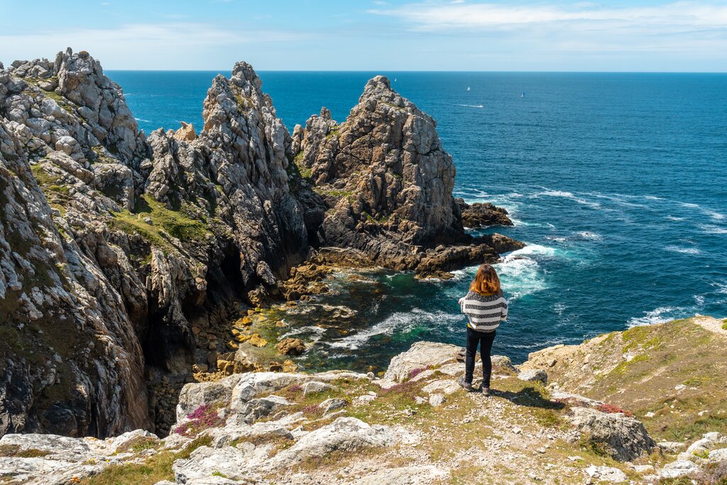 <Ein kurzer Transfer bringt uns nach Camaret-sur-Mer. Von dort wandern wir auf dem GR34 entlang der Küste, wo sich schon nach wenigen Schritten der Blick auf den Atlantik öffnet und das Meer in sattem Blau glitzert. Der Pfad führt uns über Heideflächen und Klippen bis zur Landspitze von Toulinguet und weiter am langen Strand von Pen Hat entlang. Am Kap Pen Hir stehen wir schließlich vor den „Tas de Pois“ – markanten Felsnadeln, die aus den Wellen ragen und wie Wächter vor der Küste wirken. Am Strand von Veryac’h machen wir eine Pause, bevor uns der Rückweg durch das Landesinnere wieder nach Camaret-sur-Mer führt.