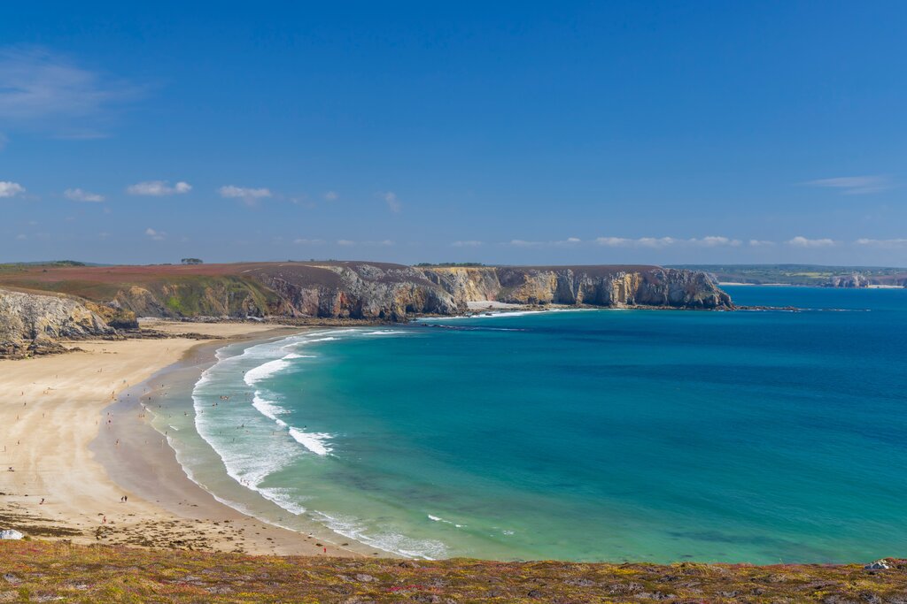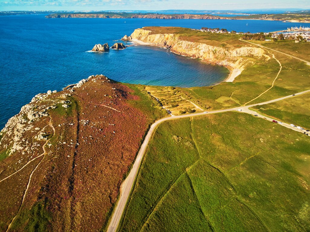<Wir starten in Morgat und folgen dem GR34 südwärts entlang der zerklüfteten Küste. Immer wieder öffnen sich neue Ausblicke auf versteckte Buchten, etwa bei der Île Vierge, wo türkisfarbenes Wasser und helle Strände einen reizvollen Kontrast zur wilden Felsenküste bilden. Am Cap de la Chèvre genießen wir den weiten Blick über den Atlantik, bevor uns ein stiller Weg durch das grüne Landesinnere zurück nach Morgat führt.