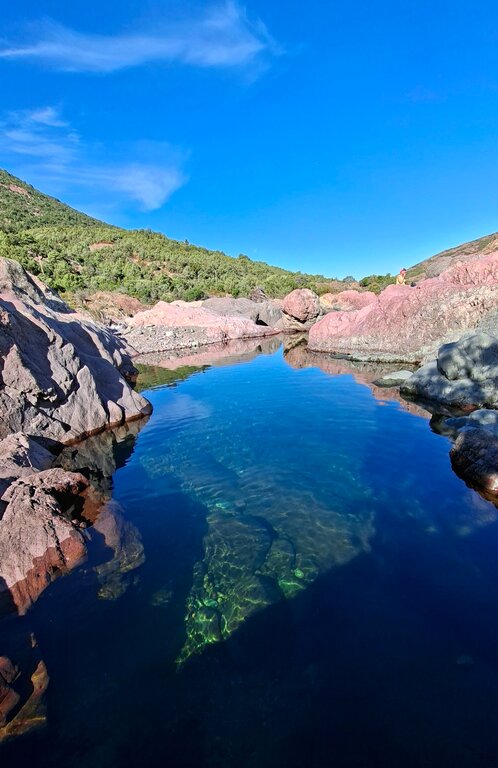 <Wir steigen zuerst steil bergab, bevor uns der Weg gemütlich absteigend durch die duftende Macchia bis zum kleinen Fischerdörfchen Girolata führt. Das malerische Dorf liegt idyllisch in einer geschützten Bucht und strahlt eine ganz besondere Atmosphäre aus. Girolata ist nur zu Fuß oder per Boot erreichbar. Wir nehmen den alten Postbotenweg, der uns immer entlang der Küste führt, zurück. In der Bucht von Tuara nutzen wir die Zeit, um im Meer zu baden und die Ruhe zu genießen.