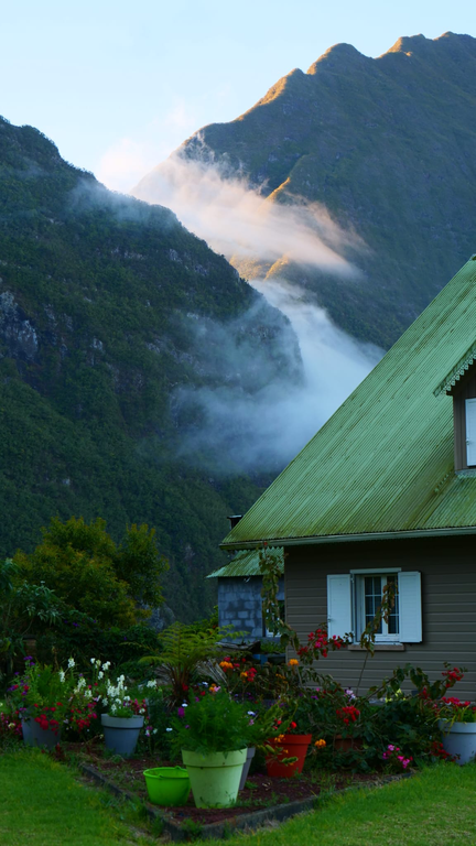 <Fahrt in den Cirque de Salazie nach Hell Bourg. Hier starten wir unsere Wanderung entlang des GR1. Wir durchschreiten den Cirque de Salazie und gewinnen erste faszinierende Eindrücke von der schroffen Bergwelt und der üppig grünen Vegetation im regenreichsten der drei Vulkankessel im Inselinneren. Nach einem steilen Aufstieg führt unser Weg in sanftem Auf und Ab bis Grand Ilet, wo wir zum ersten Mal in einer typisch Kreolischen Berghütte übernachten.