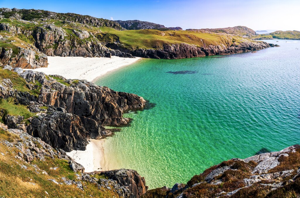 Nach der Wanderung fahren wir weiter Richtung Nordwesten und erreichen den Achmelvich Beach – ein Bilderbuchstrand mit feinem, weißem Sand und glasklarem, türkisfarbenem Wasser. Hier bleibt Zeit, die Seele baumeln zu lassen, die Füße ins Meer zu tauchen oder vielleicht sogar kurz zu schwimmen.
