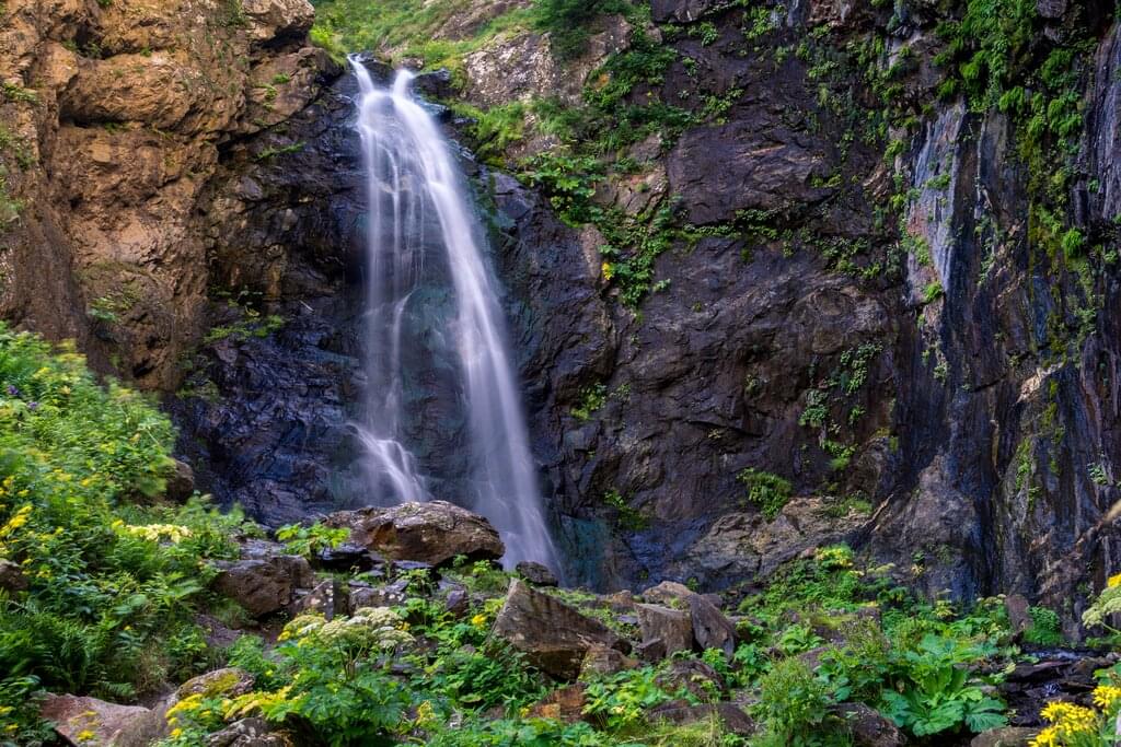 <Am Morgen fahren wir durch das Snotal bis zum abgelegenen Dorf Dschuta, das 6-7 Monate im Jahr von der Außenwelt abgeschnitten ist. Unsere Wanderung führt uns durch ein stilles Gebirgstal mit beeindruckendem Blick auf den Berg Tschauchebi (2.550 m) – die Landschaft erinnert an die Dolomiten. Nach der Rückkehr nach Dschuta fahren wir weiter nach Gudauri zu unserer nächsten Unterkunft.