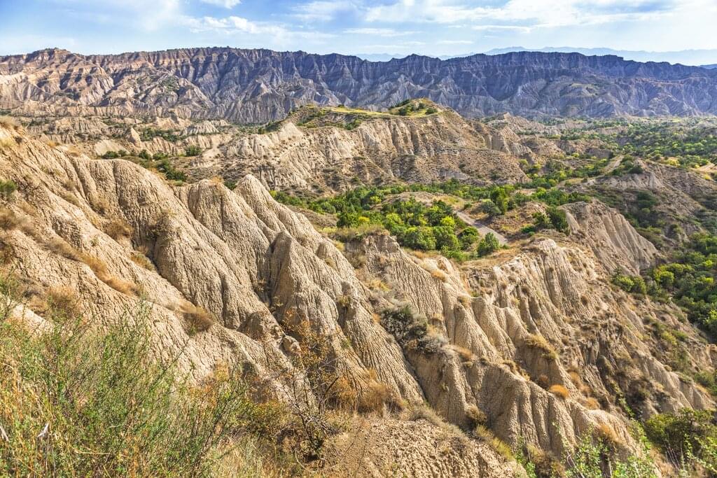 <Heute fahren wir durch den beeindruckenden Vashlovani Nationalpark, ein Paradies für Naturfreunde. Vorbei an Kiefern und Walderdbeeren genießen wir die beeindruckende Aussicht auf Berge und Täler. Gute Beobachter entdecken Rebhühner, Adler, Geier sowie Wald- und Steppenfüchse und vieles mehr.