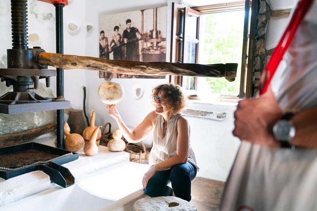 <Fahre nach Kaloxylos im Herzen des größten Olivenhains der Insel und einem der ältesten der Welt. Hier besuchst du ein Olivenölpressenmuseum und erfährst mehr über die Bedeutung des Olivenöls für die griechische Kultur und die traditionellen Gewinnungsmethoden. Nach deinem Besuch kannst du dein neues Wissen bei einem Kochkurs im nahegelegenen Dorf Galini in die Tat umsetzen. Dort triffst du auf eine Einheimische, die ihr kulinarisches Wissen mit der Gruppe teilt und dir Rezepte mit auf den Weg gibt, die du zu Hause nachkochen kannst. Zuerst sammelst du frische Zutaten aus dem Bio-Garten deines Gastgebers und lernst etwas über den Anbau und die Landwirtschaft auf Naxos. Dann zauberst du aus den Zutaten ein naxosisches Gericht und genießt die Früchte deiner Arbeit zum Mittagessen. Begleite dein Mittagessen mit einer Verkostung des lokalen Kitron. Dieser Zitronenlikör, dessen Geschichte bis ins 19. Jahrhundert zurückreicht und der ausschließlich auf Naxos hergestellt wird, gibt dir einen Einblick in die Kultur der Insel. -