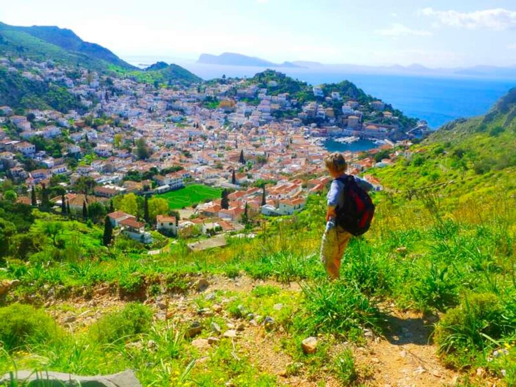 <Direkt vom Hotel aus wandern Sie heute entlang der Nordküste vorbei an den beschaulichen Dörfer Kaminia, Vlychos und Plakes bis zur Bucht von Palamidas. Ein kurzer Abstecher ins Inselinnere, hinauf zum Dorf Episkopi, wird mit einem herrlichen Meerblick belohnt. Anschließend steigen Sie auf einem aussichtsreichen Pfad hinab zur Westküste. Hier ist die Landschaft grüner und sie durchqueren einen der wenigen Pinienwälder der Insel. In der malerischen Bucht von Bisti, bei der kleinen Kirche Agios Georgios, endet die Wanderung. Zeit für ein paar entspannte Stunden am Strand! Zurück nach Hydra Stadt können Sie sich ein Taxi-Boot nehmen.Falls Sie die Etappe abkürzen möchten, dann folgen Sie ab der Bucht von Palamidas einem direkten Wanderweg zurück zum Hotel (Gehzeit: ca. 3 - 4 Std., Auf- und Abstieg ca. 250 m). -