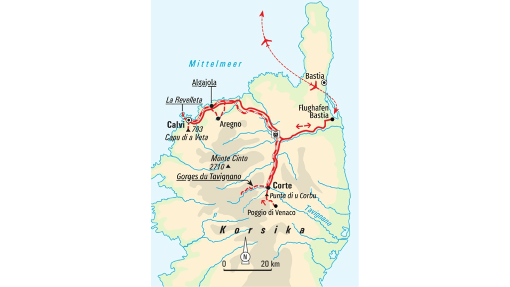 Wanderreise auf der gebirgigen Mittelmeerinsel von den beiden Standorten Corte und Calvi Korsika duftet. Ein Hauch von Rosmarin und Thymian flattert lautlos über die menschenleeren Gebirgszüge. Wilde Macchia überwuchert mit weißen Tupfen die Steilhänge in verschwenderischer Fülle und verleiht der Mittelmeerinsel ein unverwechselbares Aroma. Aber nicht nur für die Nase, auch für die Augen hat die Insel einiges zu bieten. Spektakuläre Schluchten, kristallklare Bergseen und tosende Wasserfälle machen Lust, die Wanderschuhe zu schnüren. Und auch an der Küste, entlang der malerischen Buchten gibt es zu Fuß sehr viel zu entdecken. Wir erkunden die zentrale Bergwelt rund um Corte, genießen atemberaubende Ausblicke und lernen das Leben und die Traditionen der lokalen Bauern kennen. Wir tuckern mit der korsischen Eisenbahn durch die Bergwelt und können uns kaum sattsehen an der vorbeiziehenden Landschaft. Wir wandern durch die Balagne, den grünen "Garten Korsikas" und folgen den alten Maultierpfaden von Dorf zu Dorf, begleitet von der salzigen Meeresbrise. Wir suchen uns täglich einen Platz mit Aussicht für das Mittagspicknick und genießen die lokalen Köstlichkeiten in natürlicher Kulisse. Tierische Begegnungen sind auf unseren Wegen auf keinen Fall überraschend, denn Kühe, Ziegen oder Schafe ziehen völlig frei über die Insel und machen es sich mitunter auf den Straßen oder am Wegesrand gemütlich. Und am Abend, wenn wir uns in das lebendige Treiben der Altstädte stürzen, kitzelt uns noch immer der Geruch von korsischen Kräutern in der Nase. Berge oder Meer – auf Korsika muss sich niemand entscheiden.