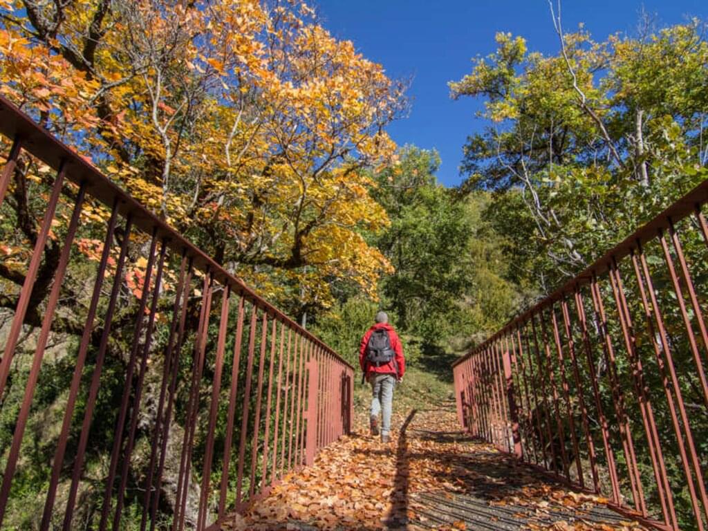 <Sie nehmen den historischen Pfad nach La Plana de Mont-ros und steigen auf nach Castell-estaó. Nehmen Sie sich Zeit, um die eindrucksvolle Aussicht über das Tal zu genießen. Schließlich geht es auf alten Wegen weiter Richtung Antist und danach Richtung Estavill. Von hier aus steigen Sie ab zum Kloster Torres und zur Teufelsbrücke. Sie erreichen das verlassene Dorf La Bastida und wandern vorbei an mehreren kleinen Dörfern und einer hübschen Kapelle, bevor Sie Les Esglésies erreichen. -