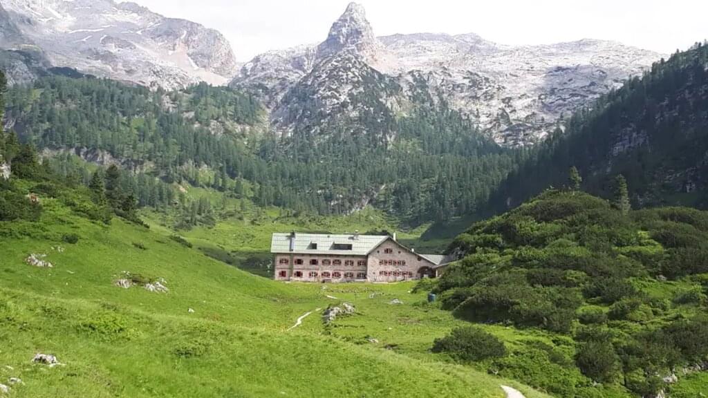 <Heute Morgen führt uns der Weg vom Ingolstädter-Haus durch das beeindruckende Karsthochplateau des Steinernen Meeres. Die Landschaft entfaltet sich weit und wild vor uns. In leichtem Auf und Ab erreichen wir das Riemannhaus auf 2.177 m. Dort machen wir eine ausgiebige Mittagsrast und genießen die Ruhe der Berge. Nach der Pause setzen wir den steilen und teils ausgesetzten Abstieg hinunter Richtung Maria Alm im Salzburger Land fort. Von dort nehmen wir ein Taxi ins idyllische Käfertal. Ein kurzer Aufstieg führt uns zur Trauner-Alm, wo wir die Nacht verbringen werden. -