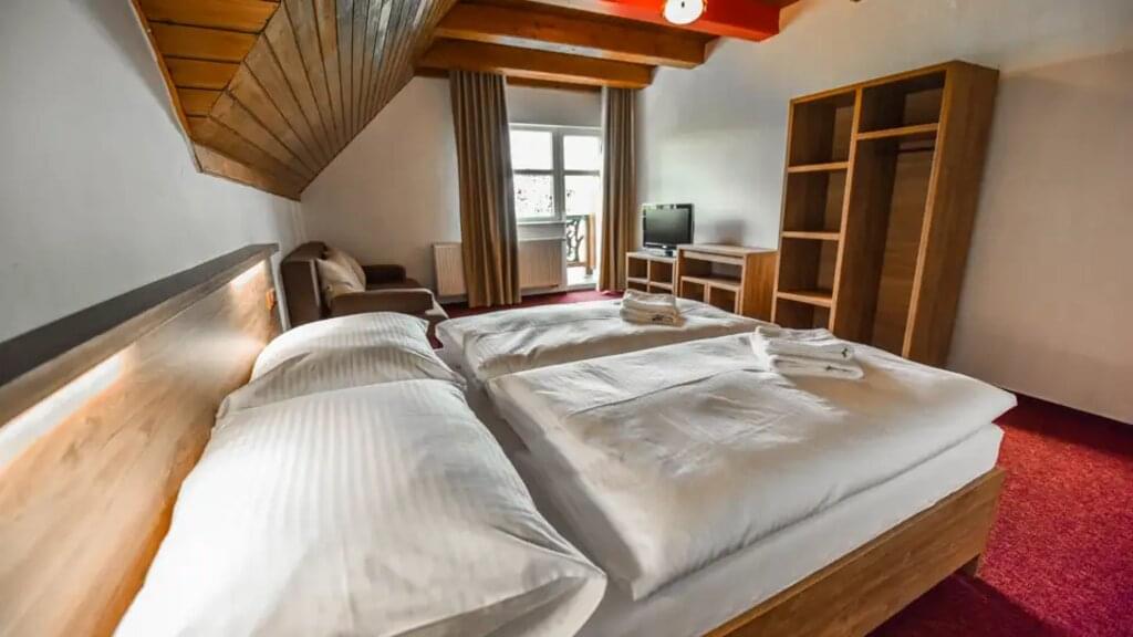<Die Anreise mit dem Kleinbus ab München über Wien nach Stara Lesna kann hinzu gebucht werden. Unser Reiseleiter empfängt uns im Hotel. Ganz in Ruhe beziehen wir unsere Zimmer und richten uns für die nächsten Tage gemütlich ein. Anschließend treffen wir uns wieder zum Abendessen und besprechen das Programm für die nächsten Tage. -