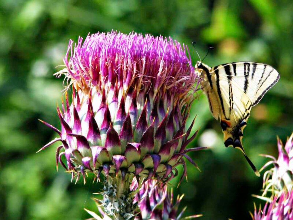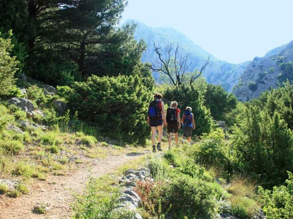 <Gleich hinter der Küstenlinie steigen die Felswände des Velebit-Gebirges steil in die Höhe und heute wollen wir das Gebiet erkunden. An einem Wanderparkplatz im Nationalpark Paklenica schnüren wir unsere Wanderstiefel. Über grüne Wiesen und durch üppige Macchia schlängelt sich unser Weg bergauf. Bald ändert sich die Landschaft, Steinriesen tauchen aus den Graslichtungen auf. Der Weg wird steiler und steiniger und schließlich taucht der Bojin Kuk (1.110 m) vor uns auf. Ein letzter teilweise mit Stahlseilen versicherter steiler Aufstieg über Kalksteinplatten und wir stehen auf dem Gipfel. Von hier oben haben wir einen atemberaubenden Blick auf die umliegenden Berge des Velebit, auf die roten Dächer von Zadar und die Inselwelt der Adria. Nach einer gemütlichen Rast steigen wir auf einem anderen Weg zur Ebene Velko Rujno ab. -
