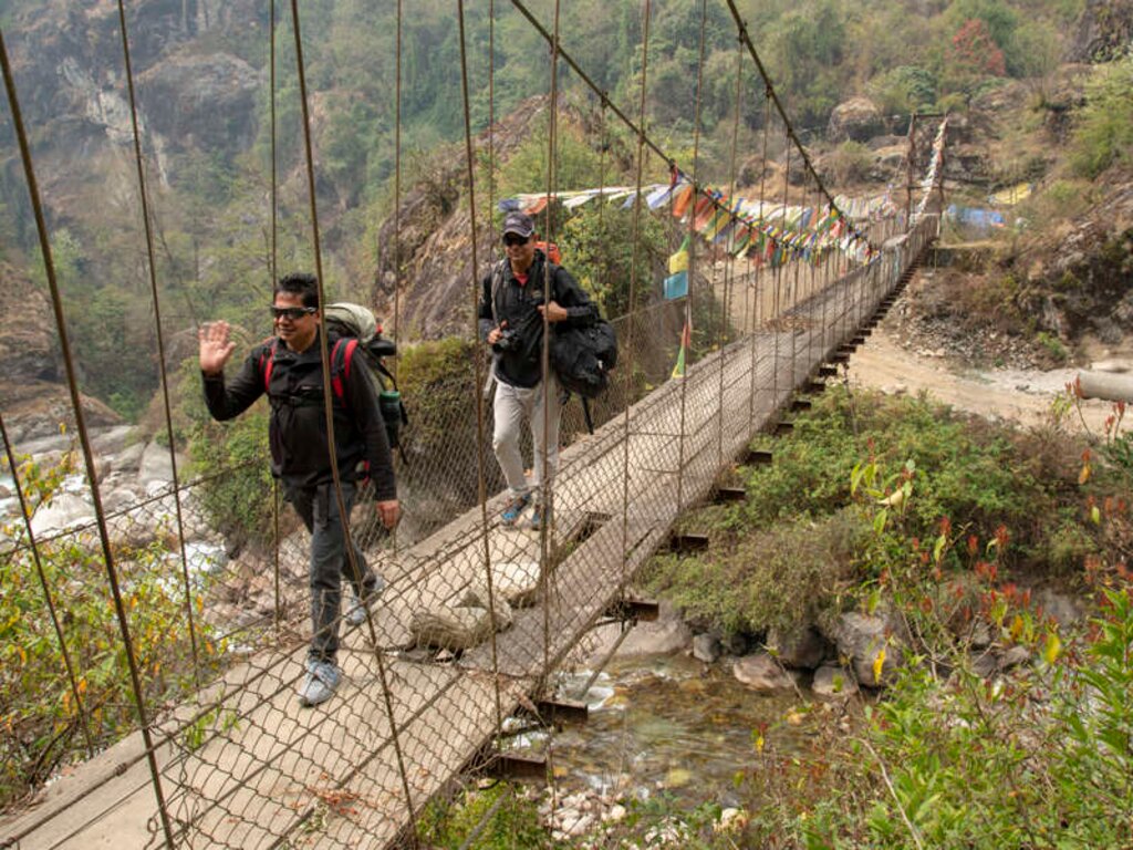 Trekkingreise durch die Helambu-Region mit Unterkunft in Lodges des Climate-Trek-ProjektesGrüne Hügel so weit das Auge reicht. Auf den Terrassenfeldern steht der Buchweizen in weißer Blüte, Orchideen schmücken die Baumstämme im mystischen Nebelwald. Und in der Ferne türmen sich die Bergriesen auf wie Wächter über die Natur. Wir befinden uns auf dem Climate Trek. Doch was ist das genau? "Ein innovatives, zukunftsweisendes Reisekonzept, das mich zu 100 % begeistert." (Manfred Häupl) Lokale Lodgebesitzer und Reiseagenturen, die Klimaschutzorganisation atmosfair, das forum anders reisen und Hauser Exkursionen haben sich zusammengeschlossen, um in der Helambu-Region einen Trekkingpfad wieder aufleben zu lassen, nachdem das Erdbeben 2015 die Region schwer erschüttert hat. Der Wiederaufbau der Lodges, erdbebensicher und versorgt mit erneuerbarer Energie, sichert den Menschen vor Ort langfristig ihre Einkünfte. Und uns die Chance, die Schätze dieser Region in gemächlichem Tempo zu erkunden. Wir wandern auf und ab, über Steintreppen und durch knorrigen Rhododendronwald. Immer wieder öffnet sich uns die Fernsicht auf die Bergkette des Jugal Himal, dessen Gipfel fast die 7.000 Meter knacken. Wir lernen die hier verwurzelte Sherpa-Kultur kennen, die ansonsten im Khumbu-Gebiet nahe des Mount Everest anzutreffen ist, und erfahren das Leben in den Dörfern hautnah – und immer wieder bewundern wir die buddhistischen Chörten, Stupas und Wassermühlen. Bevor es zurück nach Kathmandu geht, besuchen wir ein Schulprojekt, das wie die Lodges mit erneuerbaren Energiesystemen ausgestattet wurde und sehen mit eigenen Augen, was der Climate Trek hier bewegt. Eine echte Win-win-Situation.