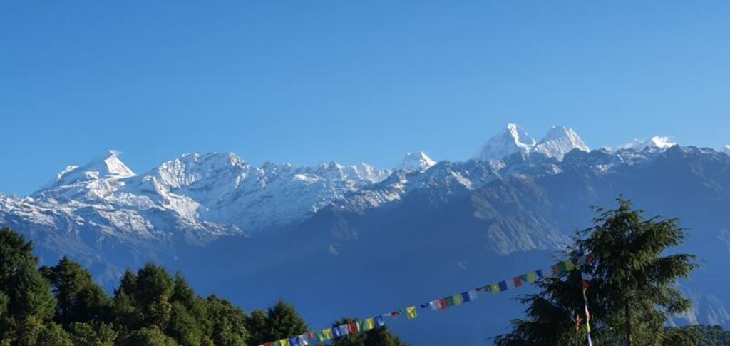 <Leicht steigen wir heute Vormittag über Steinstufen auf und ab bis zum Dorf Ghul Bhanjang (2.180 m) - eine wunderbare Gelegenheit, die Kulturlandschaft in uns aufzunehmen. Nach langer Pause und Stärkung beim Mittagessen in einer Lodge, geht es weiter hinauf auf knapp 2.600 Meter. Wir genießen - bei guter Sicht - erste Blicke auf 6000er in der Ferne und wandern dann im leichten Abstieg bis zu unserem Ziel Kutumsang auf 2.520 m. -