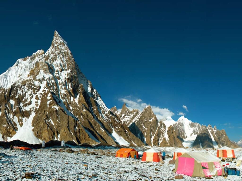 Trekkingreise zum Concordia-Platz und Basislager des K2 mit Überschreitung des Gondogoro LaZwischen den Bergen des Karakorum im Norden und dem Himalaya im Süden verbirgt sich eine Welt voller gewaltiger Gletscher und mächtiger Gipfel: Baltistan. Die Hochgebirgslandschaft im Norden Pakistans ist wild und rau. Auf den Wiesen blüht Edelweiß, zwischen den Felsen rauschen eiskalte Bäche. Wir wandern entlang des tosenden Braldu-Flusses, queren luftige Seilbrücken und schlagen unsere Zeltlager an aussichtsreichen Plätzen auf. Wir passieren vier Achttausender, allen voran den K2 (8.611 m), flankiert von Gasherbrum I (8.080 m) und II (8.034 m) sowie dem Broad Peak (8.051 m), während wir auf dem Baltoro-Gletscher ins Herz des Karakorum vorstoßen. Nicht minder spektakulär präsentieren sich die zerfurchten Zinnen und massiven Schneegipfel zahlreicher Sechs- und Siebentausender. Auf dem Concordiaplatz, wo mehrere große Gletscher aus verschiedenen Richtungen ineinander strömen, stehen wir auf 4.600 m Höhe inmitten eines natürlichen Amphitheaters. Eine grandiose Bühne für eine einzigartige Show aus Fels und Eis! Noch etwas näher rücken wir den Bergriesen im Basislager von Broad Peak, wo uns ein Hauch des Mythos Höhenbergsteigen umgibt. Und an der Passhöhe des 5.614 m hohen Gondogoro La breitet sich abermals ein unvergessliches Panorama, u.a. mit dem Laila Peak, vor uns aus. Das Trekking zum Concordiaplatz – einer der beeindruckendsten Gebirgsklassiker der Welt.