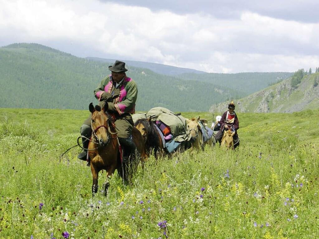 <Wir wandern das Suviin Davaanii-Tal hinauf bis zum Fuß des Suv-Passes im Khan Khentii-Nationalpark. Der Park hat eine Fläche von 12.271 Quadratkilometern. Seit 1996 ist dieser Nationalpark als Weltkulturerbe registriert. Durch menschliche Tätigkeit wurde das Gebiet kaum verändert. Fauna und Flora sind ähnlich wie in Sibirien. -