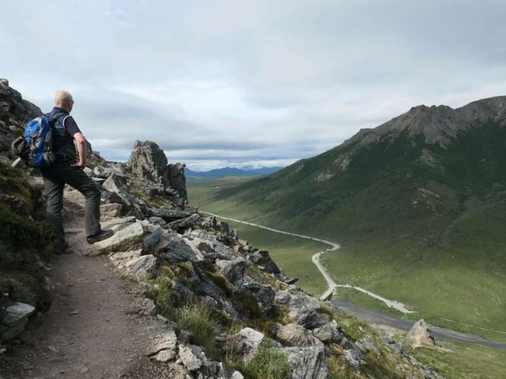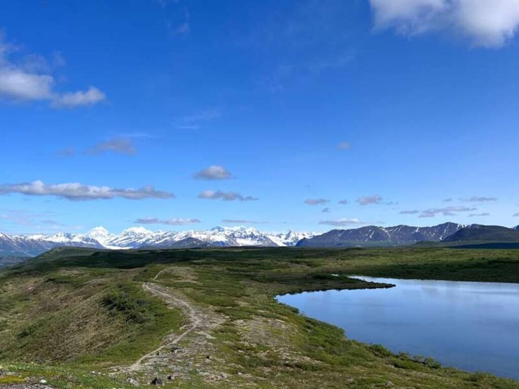 <Wir verlassen den Denali Highway und folgen dem gleichnamigen Highway, einer 200 km langen Wildnispiste, die zu den landschaftlich eindrucksvollsten Straßen Alaskas gehört. Sie führt uns durch eine wilde unberührte Gebirgswelt mit fantastischen Blicken auf die schneebedeckten Gipfel der Alaska Range. Zahlreiche Seen und Gletscherflüsse prägen die Landschaft und bilden einen optimalen Lebensraum für Biber, die hier zahlreiche Dämme bauen. Elche und Karibus sind oftmals in den Ebenen zu erspähen. Vielen verschiedenen Zugvögeln (Seeschwalben, Eistaucher, Kraniche, Gänse, Schwäne etc.) dient diese Region während der Sommermonate als Nist- und Brutplatz. Bei frühzeitiger Ankunft besteht die Möglichkeit für eine Wanderung in dieser einzigartigen Wildnis. Wir begeben uns auf den McLaren Summit Trail und können eindrucksvolle Blicke auf die Alaska Range genießen. -