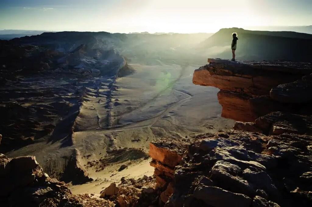 <Morgens Ankunft in Santiago de Chile und Weiterflug nach Calama. Auf dem Flug nach Nordchile sehen wir unter uns die Pazifikküste und die Andenkette vorbeiziehen. Am Flughafen werden wir von unserer deutschsprachigen Reiseleitung begrüßt und abgeholt. Gemeinsam fahren wir nach San Pedro de Atacama (2.438 m). Auf dem Weg halten wir im "Valle de la Luna", dem Mondtal mit seinen bizarren Felsformationen. Wir beziehen Quartier in dem gemütlichen Hotel unserer Agentur, etwas außerhalb des Trubels. Bei einem ersten Abendessen lernen wir uns kennen. -