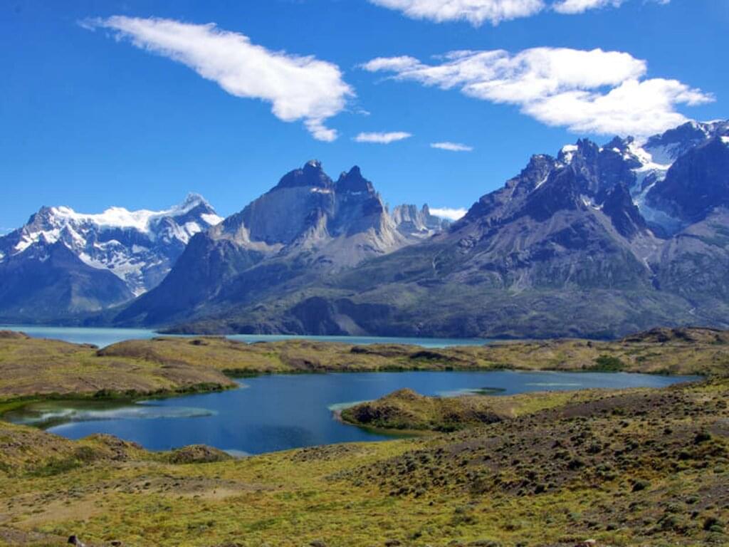 <In einer Tageswanderung wandern wir erst durch das wilde Bach-Tal des Río Ascensio. Der Buchenwald versperrt zunächst den freien Blick, bis wir die Baumgrenze erreicht haben. Es geht stetig und relativ steil hinauf in etwas felsdurchsetztem Gelände. Doch die Anstrengung hat sich mehr als gelohnt. Jetzt liegen die Torres del Paine vor uns, die drei Granittürme, die bis 2.800 m hoch in den Himmel aufragen und sich in dem kleinen See (850 m) widerspiegeln. Nach unserem Trekking-Tag fahren wir weiter nach Puerto Natales zu unserem Hotel. -