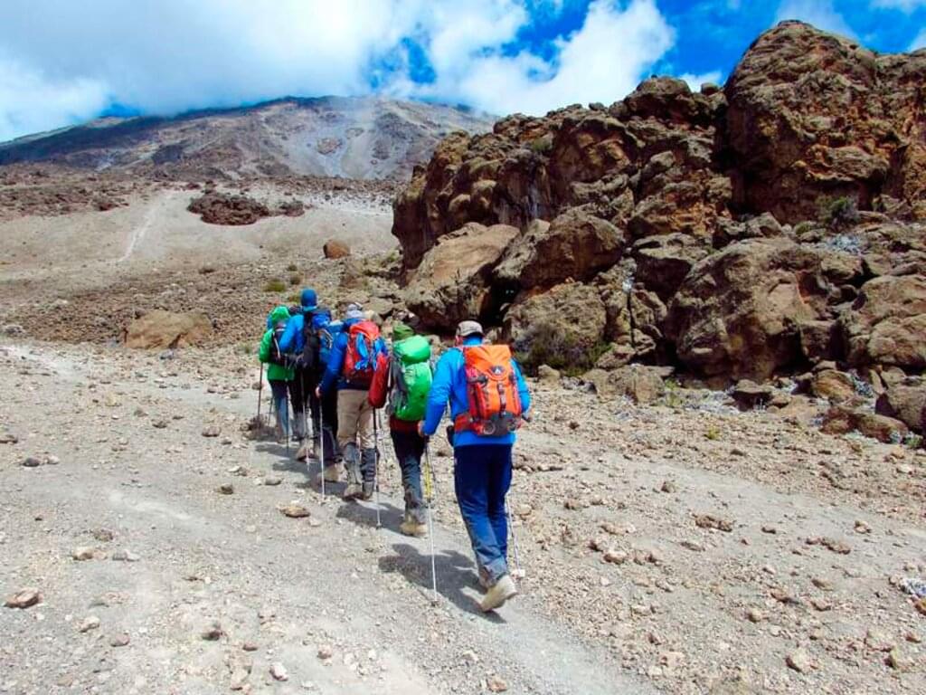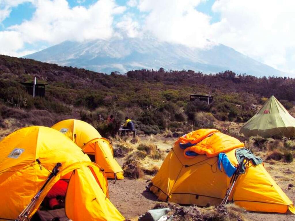 <Die zweite Etappe führt durch das Hochmoor hinauf zur zweiten Kikelewa-Höhle (ca. 3.480 m), wo wir etwas Warmes zu Mittag essen. Der heutige Tag ist ein bisschen anstrengender als der gestrige, wir wandern länger und die Etappe verläuft steiler. Wir verlassen den Hauptweg und folgen einem kleineren Pfad in Richtung des zerklüfteten Gipfels des Mawenzis. Am Nachmittag erreichen wir das Kikelewa Camp (3.630 m) in der Nähe eines kleinen Bachs und können die grandiose Aussicht auf die östliche Flanke des Kibo, des höchsten Vulkans des Massivs, genießen. Hinsichtlich der Höhenanpassung ist es auch heute sehr ratsam, noch ein Stück aufzusteigen. -