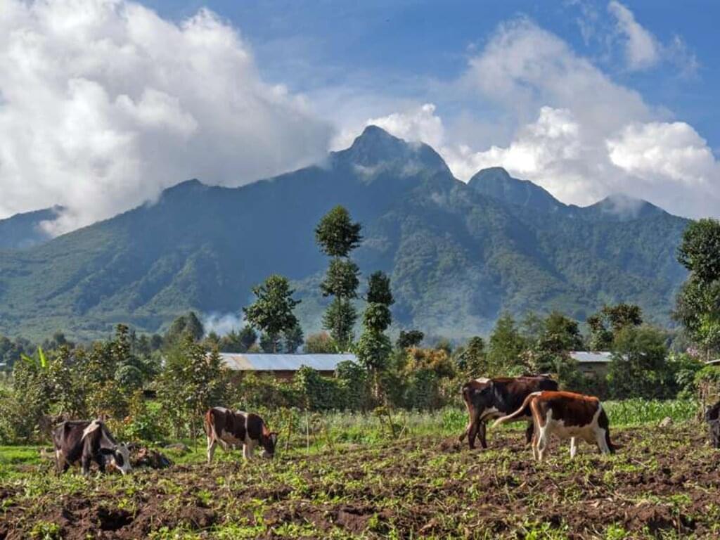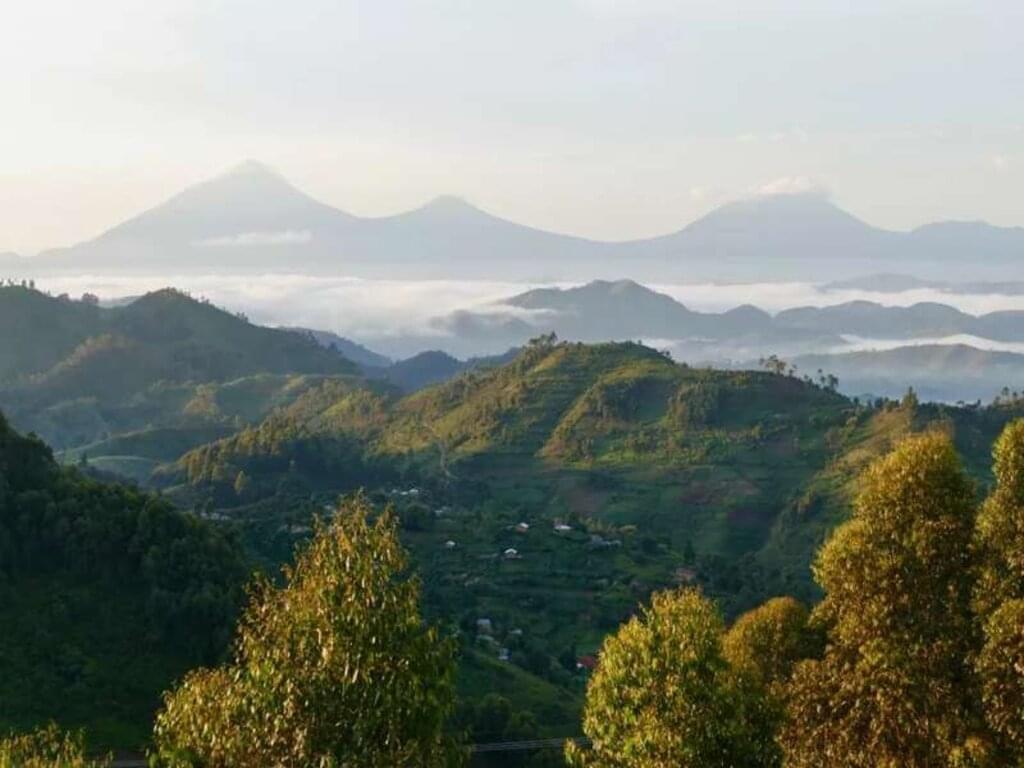 <Wir wandern auf dem Kongo-Nile-Trail. Nach einer rund 30-minütigen Anfahrt mit einem Holzboot startet unsere Wanderung. Der seit 2009 eingerichtete Trail ist insgesamt 227 Kilometer lang und führt durch ein wildes Netz aus einsamen Pfaden durch die afrikanische Fjord-Landschaft am Ufer des Kivu-Sees. Wir treffen auf lokale Fischer, die nach ihrer nächtlichen Ausfahrt Barsche, Welse und Karpfenfische in ihren Netzen haben. 370 Vogelarten, darunter Kronenkranich, Kormoran und Eisvögel sind hier beheimatet. Mittags nimmt uns unser Holzboot wieder auf und wir erreichen Gisenyi, wo wir am Ufer des Kivu-Sees zu Mittag essen. Anschließend fahren wir entlang der Virunga Mountains, einer Vulkankette mit insgesamt 8 Spitzen, aufgereiht wie an einer Perlenkette. In den Trockenmonaten Juni bis August bekommt der höchste von ihnen, Mount Karisimbi (4.507m), sogar ein weißes Schneehäubchen und erinnert ein wenig an den Kilimanjaro. In Musanze, dem früheren Ruhengeri, übernachten wir. -