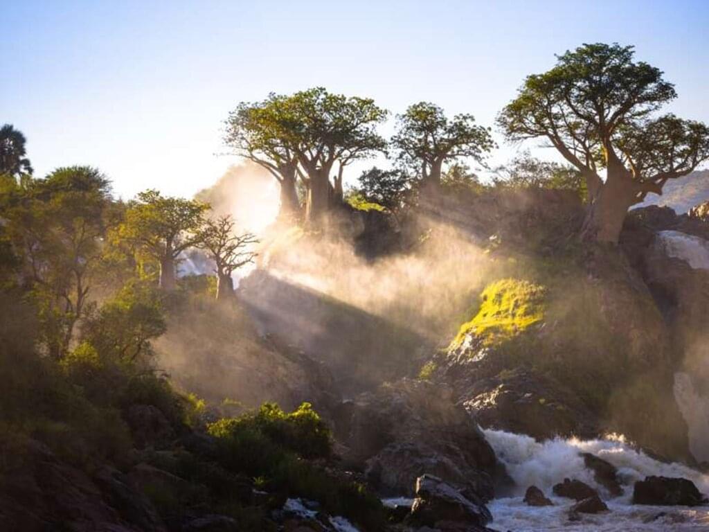 Vom Etosha NP, Colinas Canyon, Atlantikstränden, Benguela und Pedras Negras bis zu den Kalandula WasserfällenWir streunen durch eine fast unwirkliche Savannen-Landschaft, rund um uns erheben sich große, schwarz anmutende, mit einer Art Moos überzogene Felstürme, alle unterschiedlich von Erosion geformt. Es hat fast etwas Mystisches und es verwundert nicht, dass sich hier im früheren Königreich Ndongo einige Legenden um diese Monolithen ranken. So soll die schöne Kriegerkönigin Njinga einst ein Bad in einer der Quellen zwischen den Felsen genommen haben und dabei von fremden Soldaten überrascht worden sein. Entsetzt und erschrocken, gelang es Njinga über die Felsen zu fliehen. Noch heute findet sich ein Fußabdruck von ihrer energischen Flucht an einem Felsen. Den Gegensatz bilden die Sandsteintürme im Colinas Caynon, ebenfalls über Jahrhunderte vom Wind geformt, färben sich die felsigen Monumente in wunderschöne Rottöne und bilden gigantische Überreste auf dem Wüstenboden. Tropische Atlantikstrände, ein üppig grünes Hochland und die Tiervielfalt im Etosha Nationalpark vervollständigen die Kombination zweier faszinierender Länder, auch kulinarisch mit Grillfleisch und scharfer Piri Piri Sauce.