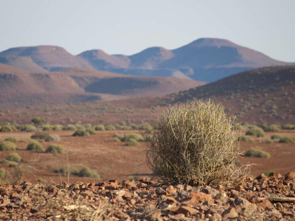 <Nach dem Frühstück starten wir in die nächste Wüstenlandschaft Namibias, zur Namib. Diese älteste aller Wüsten hat dem Land den Namen gegeben. Nach ca. 6 Stunden Fahrzeit erreichen wir das Namib Rand Naturreservat. Wir wandern nahe des Naturreservats entlang der rot-grauen Granitberge über ockerfarbenen Sand zu unserem heutigen Camp. Unser Gepäck wird transportiert und wartet bereits auf uns. Das Essen wird für uns bereits zubereitet und der erste leckere Duft macht sich breit. Die Nacht verbringen wir in warmen Feldbetten unter dem weit aufgespannten, funkelnden Sternenzelt (Matten, Schlafsack und Kissen werden gestellt). -