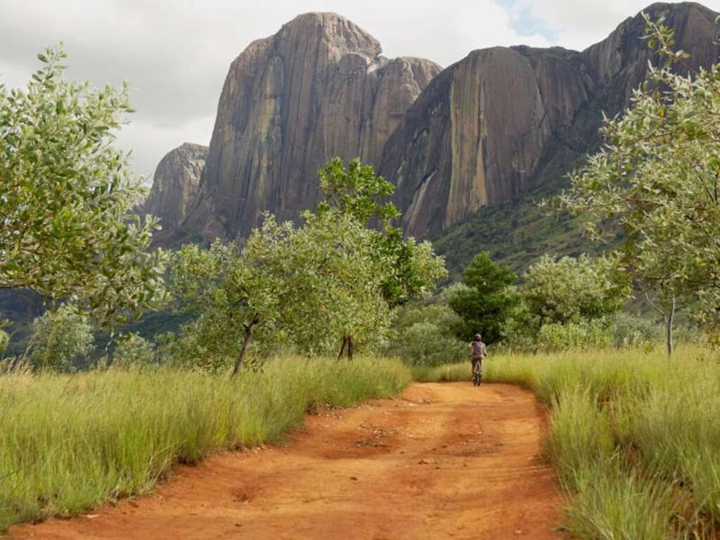 <Nachdem wir uns schon an den madagassischen Verkehr gewöhnt haben, biken wir weiter durch das fruchtbare Hochtal nach Ambositra. Auf hügeliger Straße begegnen wir immer wieder freundlichen Viehhirten mit ihren Zebu-Rindern und blicken auf Reisfelder und Pinienwälder. Unterwegs durch üppige und fruchtbare Landschaft beobachten wir das geschäftige Treiben der Bauern auf den Feldern und der Frauen, die ihre Wäsche am Flussufer waschen und trocknen. Falls die Zeit reicht, besuchen wir in Ambositra, der Hauptstadt des Kunsthandwerks, die Holzschnitzer der Zafimaniry, deren traditionelle Holzschnitzkunst von der UNESCO in die Liste der insgesamt 47 Meisterwerke traditioneller Weltkultur aufgenommen wurde. -