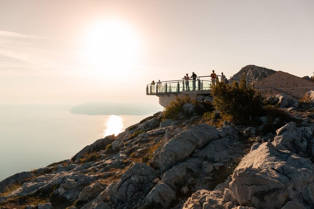 <Nach dem Frühstück fahren wir entlang der Küste nach Lokva Rogoznica, wo unsere heutige Panoramatour startet. Ein alter Hirtenpfad bringt uns stetig bergauf zu einem Sattel mit traumhaftem Blick auf die tiefblaue Adria. Unterhalb des Gipfels Kula folgen wir einem aussichtsreichen Pfad über den Bergrücken, bis wir den Höhepunkt der Tour erreichen: ein Aussichtspunkt mit Blick auf die spektakuläre Cetina-Schlucht zur einen und das offene Meer zur anderen Seite. Danach steigen wir über steinige Wege ins Dorf Podašpilje ab.