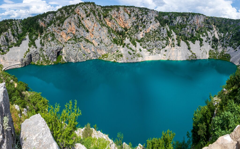 <Heute zieht es uns ins dalmatinische Hinterland. Wir verlassen die Küste und fahren ins Städtchen Imotski, wo wir die berühmten Einsturzdolinen entdecken: den Blauen und den fast 300 Meter tiefen Roten See. Danach starten wir unsere Wanderung. Auf aussichtsreichen Wegen durch offenes Gelände und kleine Dörfer erkunden wir eine stille, ursprüngliche Seite Kroatiens – fernab des Küstentrubels. Unsere Etappe endet mit weitem Blick über das Hügelland – und einem wohlverdienten, landestypischen Mittagessen.