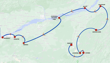 - Hotelaufenthalte (4 Nächte – Kohima, Mokokchung, Kaziranga, Guwahati)
