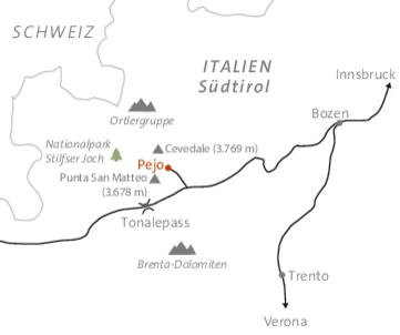 Am Anreisetag um 18:00 Uhr im Bio Natur Hotel "Chalet Alpenrose", Via Malgamare 5, I-38024 Cogolo di Pejo (TN), Loc. Masi Guilnova. Telefon: +39-0463-754088. Bei unerwarteter Verspätung bitten wir, dich über diese Telefonnummer mit dem Hotel in Verbindung zu setzen.