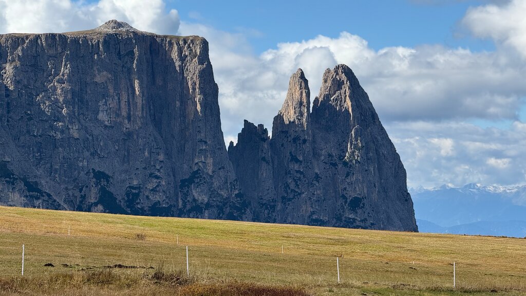<Mit dem Linienbus fahren wir von Kastelruth nach Seis am Schlern. Gemütlich geht es mit der Seilbahn auf die Seiser Alm. Von dort führt dich ein aussichtsreicher Rundweg über das Puflatsch-Plateau. Weite Almwiesen, Holzstadel und das Panorama der Dolomiten begleiten dich – Südtirol zeigt sich hier von seiner schönsten Seite. Unterwegs laden Hütten zu einer genussvollen Einkehr ein.