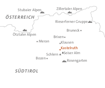 PKW: Von Norden kommend auf der Brennerautobahn (A13, mautpflichtig) über Innsbruck und den Brennerpass (Autobahnausfahrt Klausen-Gröden) nach Kastelruth. Parkplatz kostenlos, Tiefgarage ca. € 7,- pro Tag, zahlbar vor Ort.