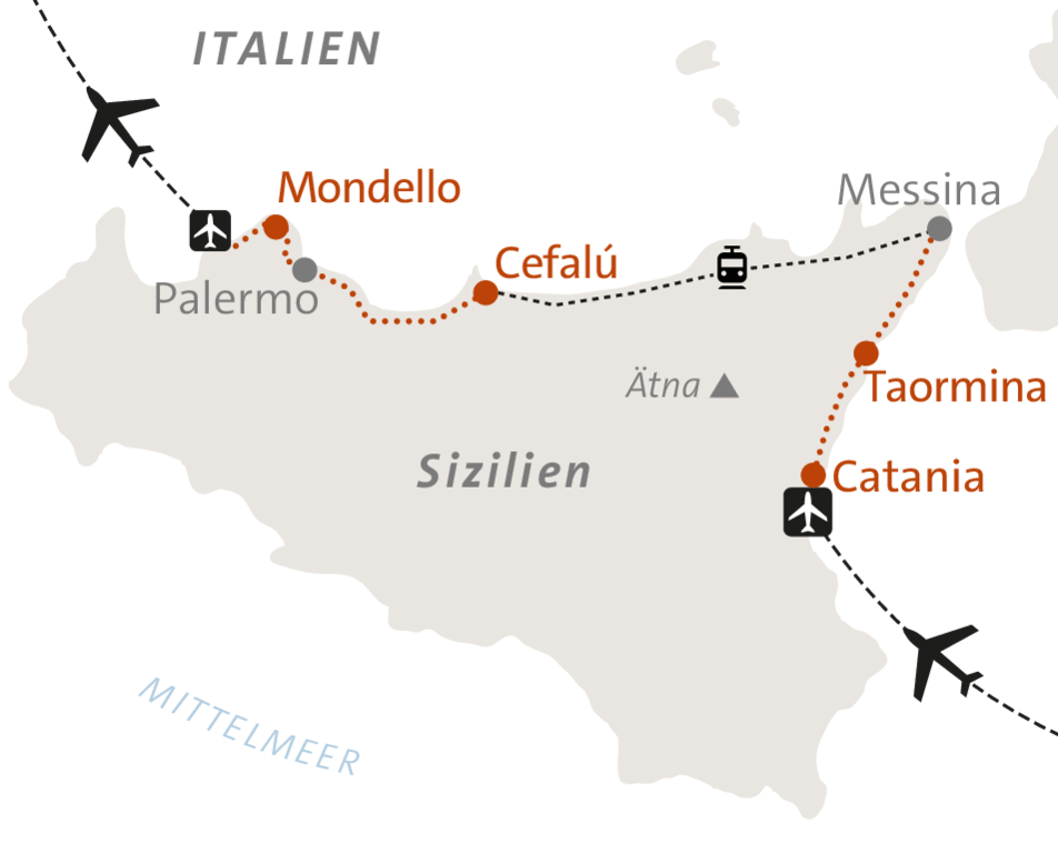 Neben den Wanderungen lassen wir uns auch von der lebendigen Kultur Siziliens inspirieren: Stadtführungen in Catania und Taormina führen uns zu historischen Plätzen und spannenden Geschichten. Gestartet wird die Reise mit einem Flug nach Catania, der Rückflug erfolgt ab Palermo – so entsteht ein stimmiger Bogen, der uns einmal quer über die Insel führt.