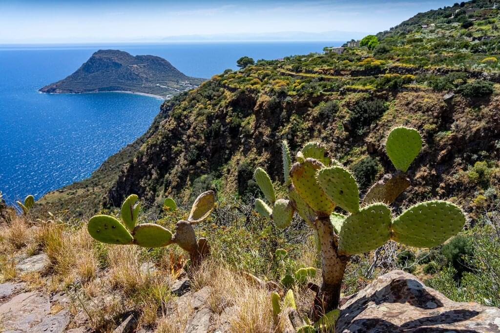 <Mit unserem Boot erreichen wir Filicudi, die wildeste der Äolischen Inseln. Am kleinen Hafen von Pecorini beginnt unser Aufstieg: Über viele Stufen und steingepflasterte Maultierpfade schlängelt sich der Weg durch das Dorf hinauf. Schon bald lassen wir die letzten Häuser hinter uns und tauchen in unberührte Natur ein – Kakteenfelder, Macchia und das Glitzern des Meeres begleiten uns. Ein schmaler Panoramaweg führt uns zum verlassenen Dorf Zucco Grande, geheimnisvoll zwischen Felsen gelegen und bereits von den Griechen bewohnt. Mit Blick auf das prähistorische Dorf Capo Graziano auf der gegenüberliegenden Seite steigen wir durch die üppige Kakteenvegetation zurück zum Hafen. Auf dem Weg dorthin öffnet uns Adelaide ihren Garten und verwöhnt uns mit einem traditionellen Mittagessen, herzlich serviert und unverfälscht wie die Insel selbst.