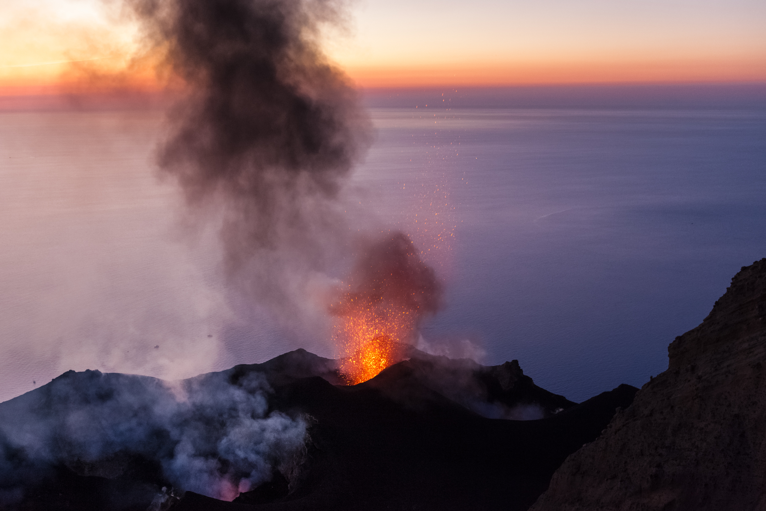 <Der Vormittag auf Lipari gehört uns – Zeit für ein Bad im Meer oder einen Bummel durch die Altstadt. Gegen Mittag bringt uns das Boot nach Stromboli, wo der schwarze Vulkankegel eindrucksvoll über dem Meer thront. Während unserer Wanderung spricht der Vulkanführer über das Projekt Attiva Stromboli, das sich seit den Bränden von 2022 für den Schutz und die Regeneration der Insel einsetzt – unter anderem durch die Pflege von Olivenhainen und das Pflanzen neuer Bäume. Auf schmalen, teils steilen Pfaden steigen wir bis auf rund 400 m auf und erleben von dort den Sonnenuntergang und das faszinierende Spiel des Vulkans in der Dämmerung. Bei einem einfachen Picknick genießen wir die besondere Atmosphäre, bevor wir im Schein der Stirnlampen absteigen. Zurück nach Lipari bringt uns das Boot, während über uns der Sternenhimmel funkelt.