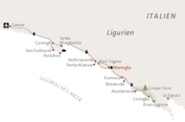 Die Cinque Terre an der ligurischen Riviera zeichnen mit ihren bunten Dörfern, den duftenden Weinbergen und den bizarren Steilküsten eine Landschaft wie aus dem Bilderbuch - das ideale Wanderziel. Wir wandern durch einen einzigartigen Nationalpark, der gleichzeitig Weltkulturerbe ist, weiter in die romantischen Küstendörfer Monterosso, Vernazza, Corniglia, Manarola und Riomaggiore. Neben den Wanderrouten entlang der Küste ist auch die Bootsfahrt nach Portofino ein unvergessliches Erlebnis.