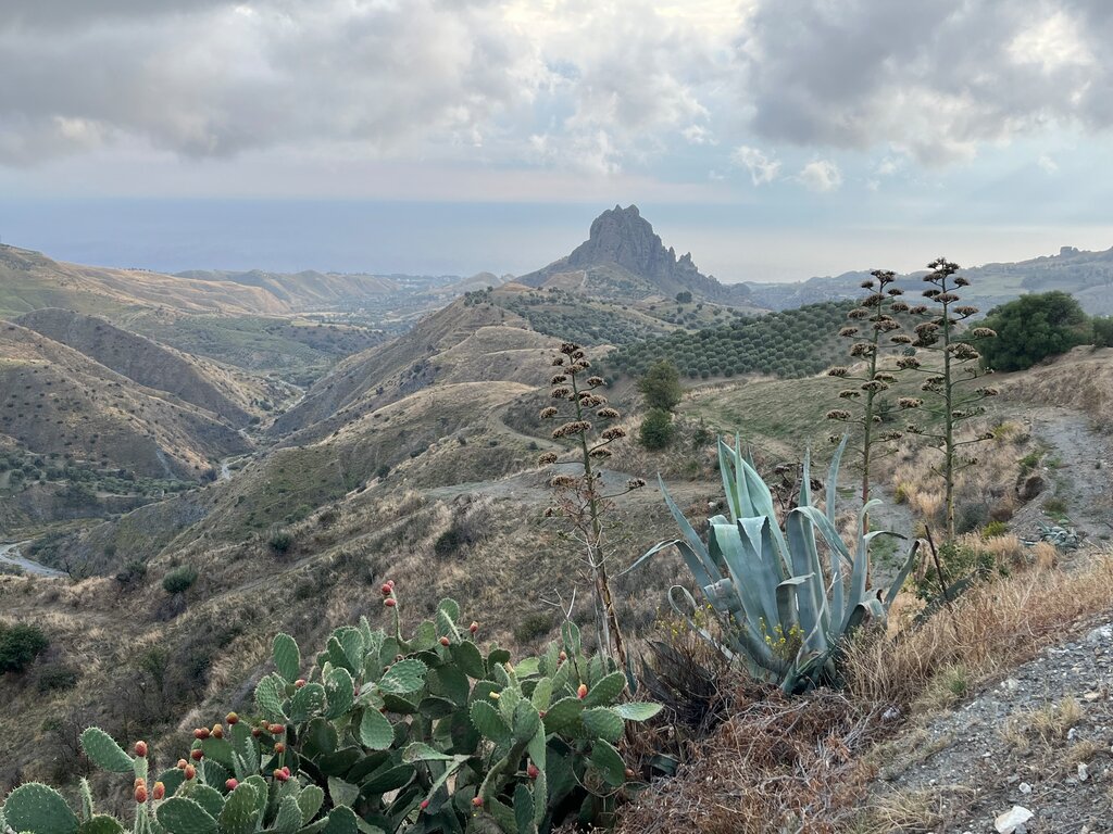 <Heute starten wir erst nachmittags. Unsere Wanderung führt durch ein beinahe ausgetrocknetes Flussbett zur Rocca di Santa Lena, einem markanten Felsen mit toller Aussicht. Erst wenn die Sonne tiefer steht und der Himmel in allen Farben leuchtet, wandern wir Richtung Meer nach Pentedattilo. Der Name kommt aus dem Griechischen und bedeutet "fünf Finger", da die Felsformation aus der Ferne wie eine Hand wirkt. Zum Abschluss lassen wir uns von Rossella mit einem rustikalen Abendessen in dieser schönen Umgebung verwöhnen.