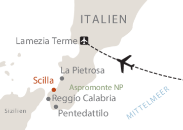 <Flug nach Lamezia Terme und Transfer nach Scilla. Der Rest des Tages steht zur freien Verfügung.