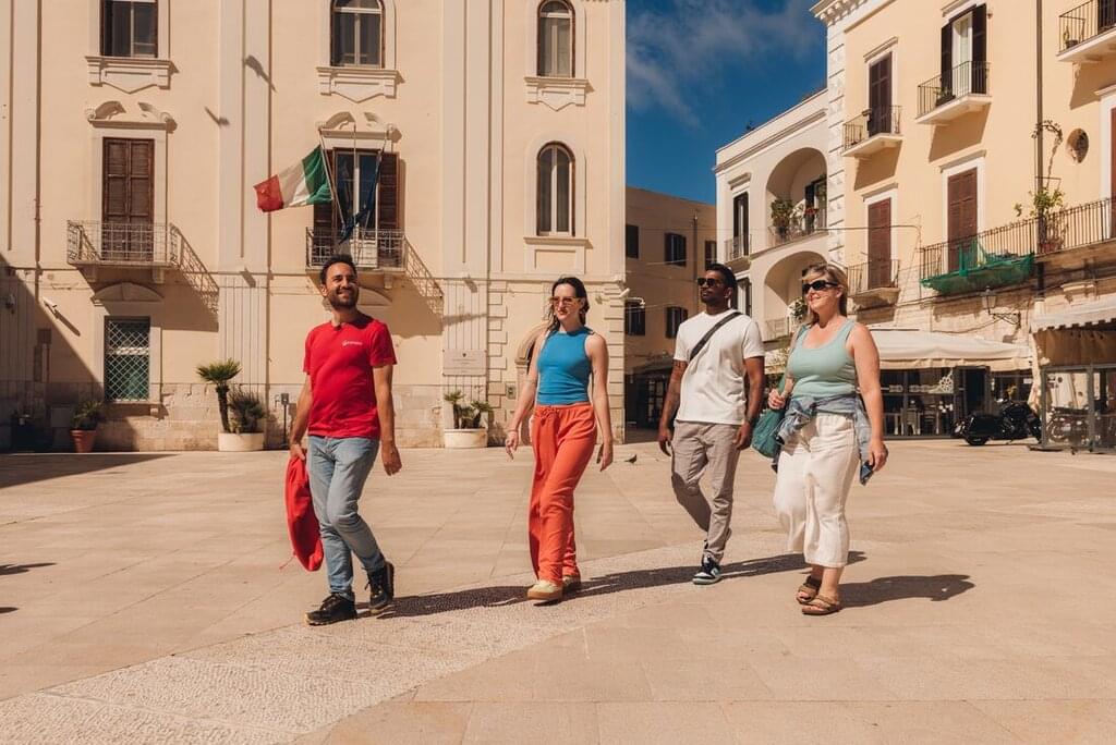 <Benvenuto! Willkommen in Apulien - dem Absatz des italienischen Stiefels. Dein Abenteuer beginnt in der Küstenstadt Bari, wo du am Flughafen abgeholt und zu deinem Hotel gebracht wirst. Um 18 Uhr findet ein Begrüßungstreffen statt, bei dem du deinen örtlichen Reiseleiter und deine Mitreisenden kennenlernst, die dich auf deinem Abenteuer begleiten. Wenn du früh ankommst, kannst du durch die labyrinthische Altstadt schlendern oder die Basilica di San Nicola aus dem 11. Jahrhundert besichtigen - eine wichtige Pilgerstätte, in der einige Überreste des Heiligen Nikolaus aufbewahrt werden. Du könntest auch in einer lokalen Cornetteria vorbeischauen und ein dekadentes italienisches Croissant essen. Nach dem Treffen lernst du deine Gruppe bei einem Abendessen kennen, bei dem dir dein örtlicher Reiseleiter die Küche Apuliens näher bringt.