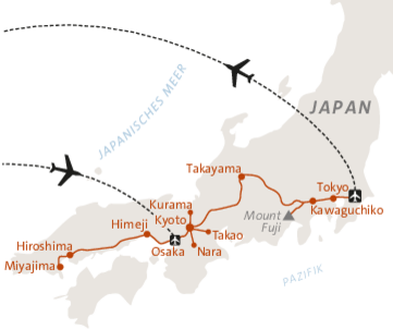 Japan vereint auf einzigartige Weise hochmoderne Städte, lebendige Traditionen und beeindruckende Naturlandschaften. Unsere Reise beginnt in Kyoto, dem kulturellen Herzen des Landes, wo wir jahrhundertealte Tempel und stille Gärten entdecken. Auf der Insel Miyajima lassen wir uns von ihrer landschaftlichen Schönheit verzaubern und wandern auf den Berg Misen. Hiroshima führt uns eindrucksvoll durch die bewegte Geschichte Japans, bevor uns ein ganz besonderes Erlebnis erwartet: wir beobachten den Sonnenaufgang auf dem Gipfel des heiligen Mount Fuji. Den Abschluss bildet Tokyo – eine Metropole, in der Vergangenheit und Zukunft auf faszinierende Weise verschmelzen und die uns mit unvergesslichen Eindrücken verabschiedet.