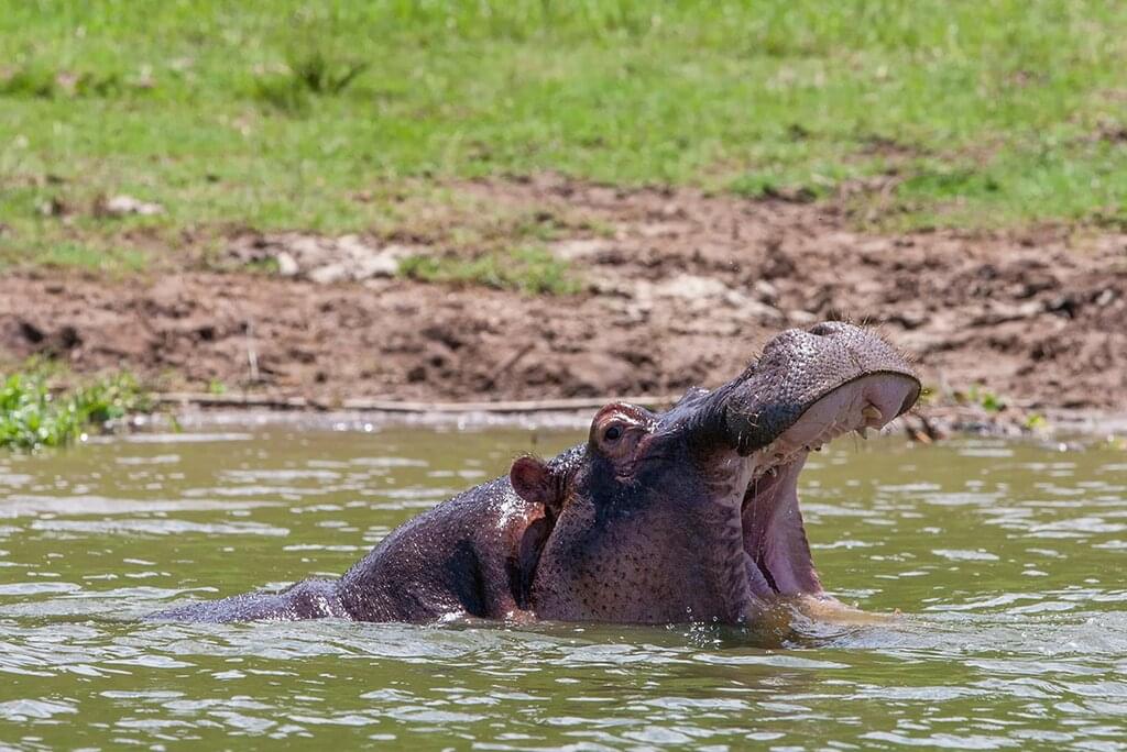 <Heute fährst du zum Queen Elizabeth National Park. Nach dem Aufbau des Camps hast du die Möglichkeit, eine Bootsfahrt auf dem Kazinga-Kanal zu unternehmen, der für Pelikane, Adler und andere Vögel sowie für eine gesunde Population von Flusspferden bekannt ist.