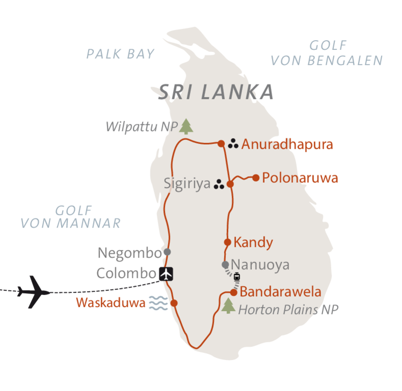 Sri Lanka, die Perle des Indischen Ozeans, zeigt sich auf exotisch-facettenreiche Weise: Die Felsenfestung Sigiriya, der Dambulla-Felsentempel und die alte Königsstadt Kandy laden zu eindrucksvollen Entdeckungen ein. Weite Sandstrände, grüne Teeplantagen und der betörende Duft der Gewürzgärten prägen das Bild der Insel. Ihre wahren Geheimnisse offenbaren sich jedoch im Alltag mit den Einheimischen – auf dem Katamaran eines Fischers, beim Meditieren mit Mönchen in Mihintale, beim Kochen eines traditionellen Reiscurrys oder mit etwas Glück im Angesicht der Leoparden im Wilpattu-Nationalpark.