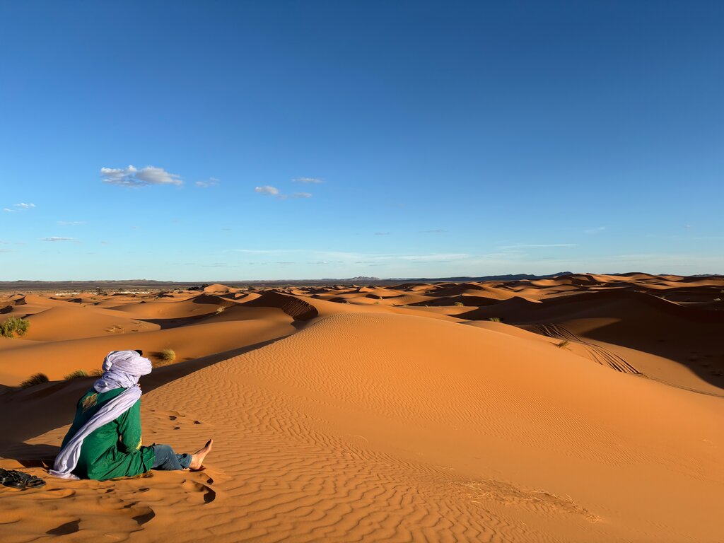 Wüstentrekking: Bevor und nach unserer Wanderung in der Wüste Erg Chebbi übernachten wir in der Regel in der gleichen Unterkunft. Du kannst dein Hauptgepäck sicher dort aufbewahren und nur das Notwendigste mit in die Wüste nehmen. Denke bitte daran, Wertsachen immer bei dir zu behalten. Nach dem Trekking kannst du dein Gepäck wieder in Empfang nehmen.