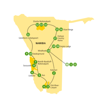 Von Ouhave über Windhoek zur Onjala Lodge