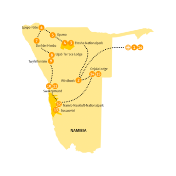 Vom Namib-Naukluft-Nationalpark zur Onjala Lodge